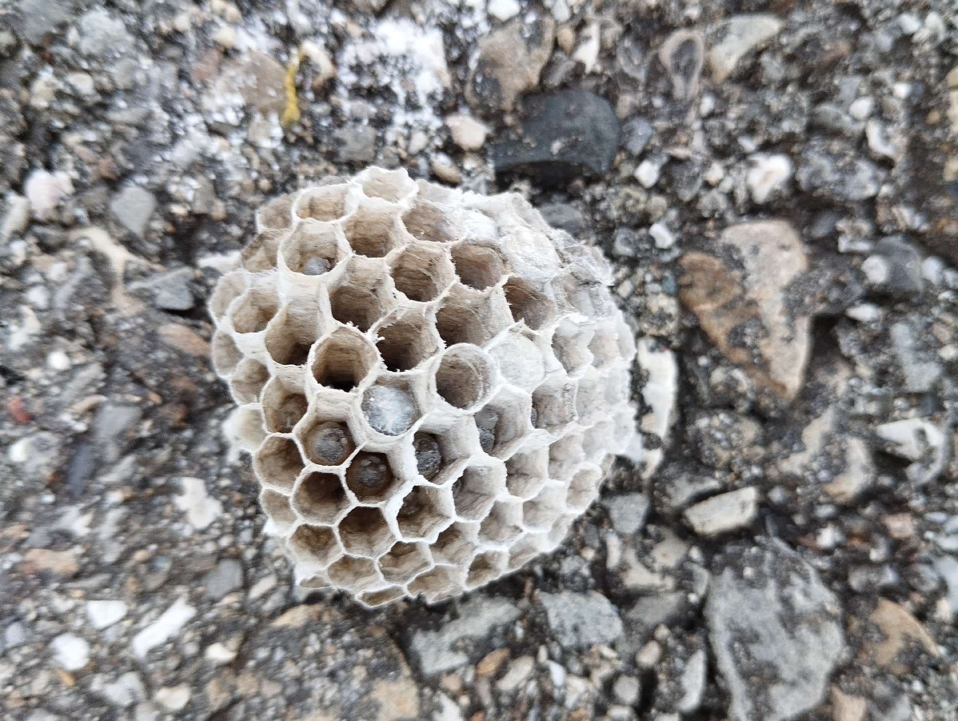 5. Nest: The Asian hornet's nest is often high in the trees, but it can also be found underground or in tall structures such as chimneys. It has an oval shape and is made of chewed wood, which gives the hornet a papery texture.