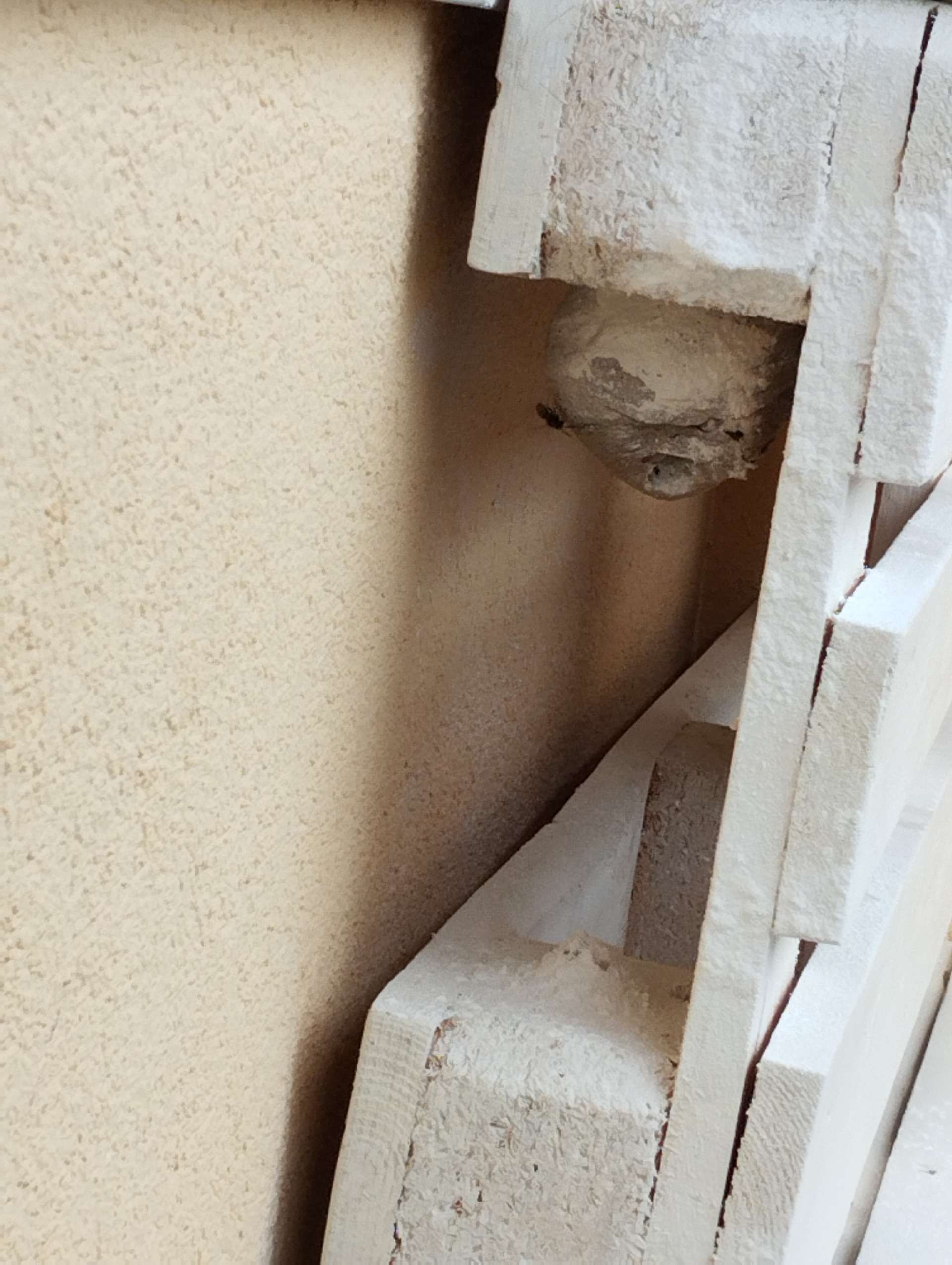 5. Nest: The Asian hornet's nest is often high in the trees, but it can also be found underground or in tall structures such as chimneys. It has an oval shape and is made of chewed wood, which gives the hornet a papery texture.