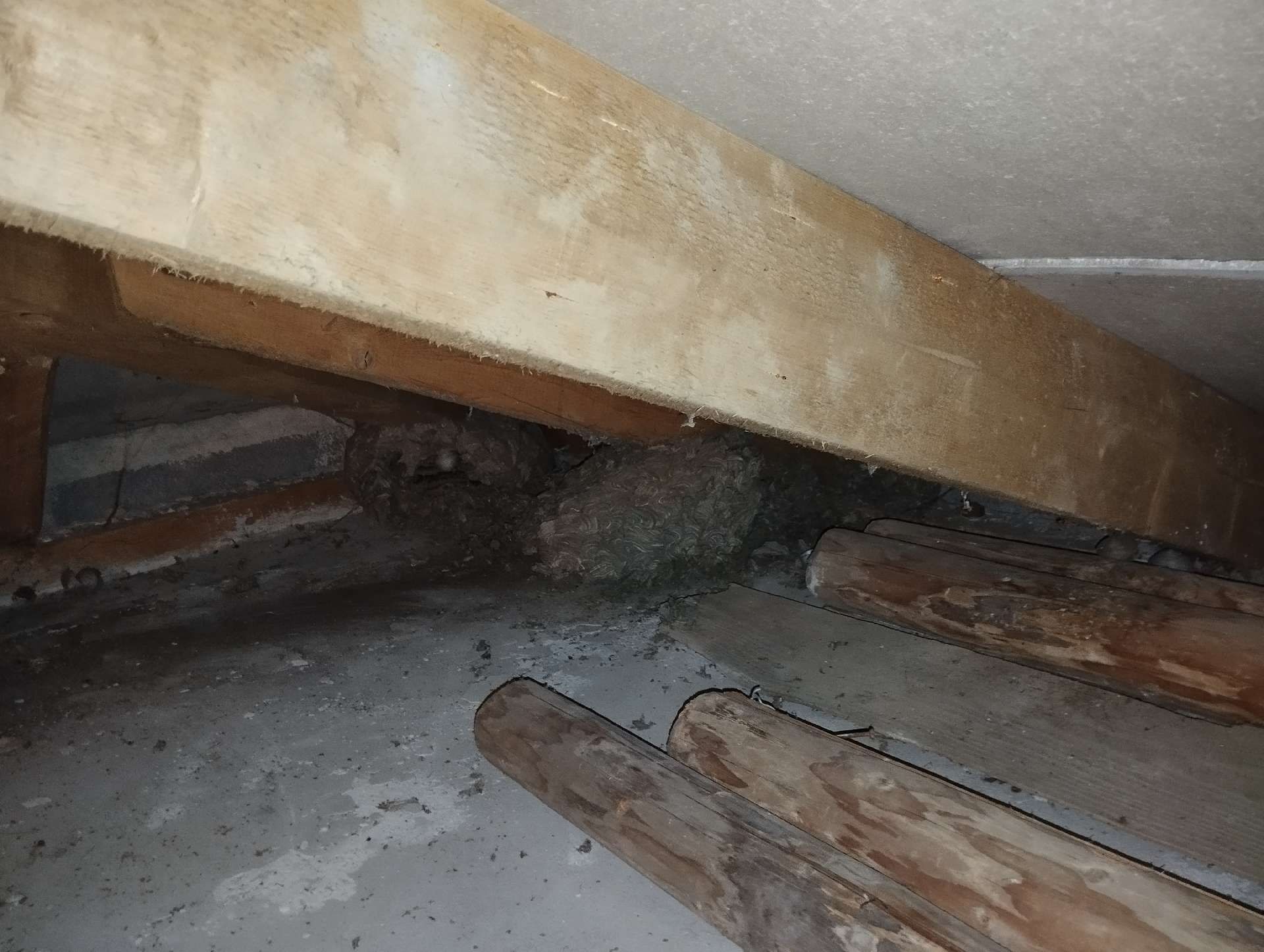 The Asian hornet overwinters in different habitats, including corners of walls, buildings, garden sheds, occasional houses, or tree hollows, either individually or as a collective presence.