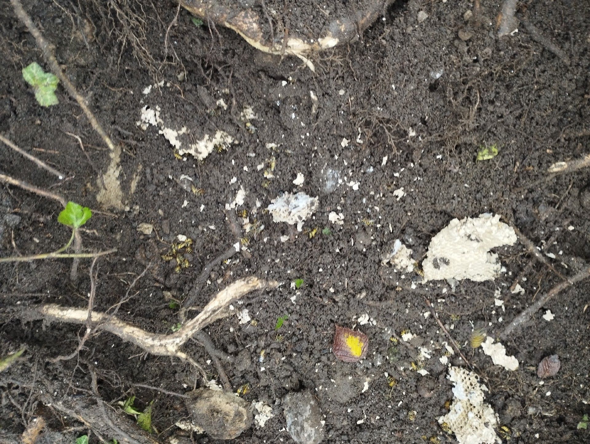 5. Nest: The Asian hornet's nest is often high in the trees, but it can also be found underground or in tall structures such as chimneys. It has an oval shape and is made of chewed wood, which gives the hornet a papery texture.