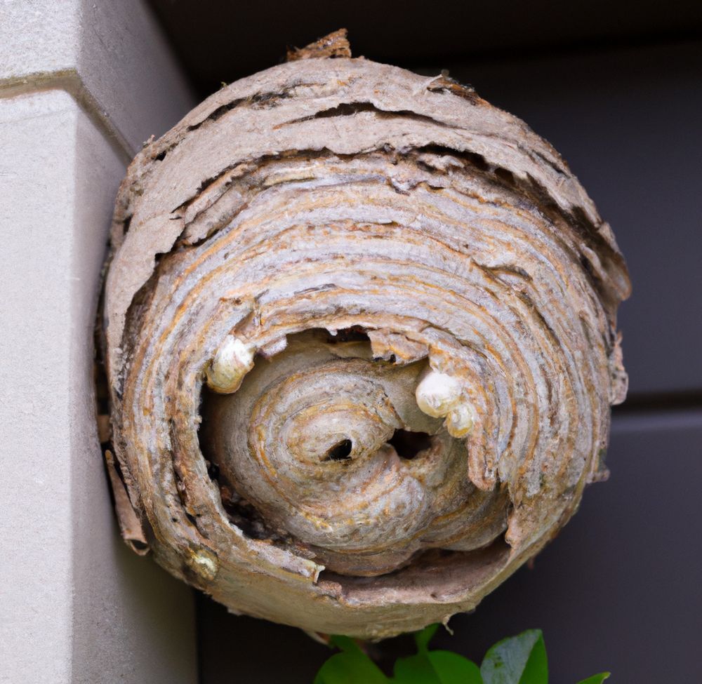5. Nest: Das Nest der Asiatischen Hornisse ist oft hoch in den Bäumen, aber es kann auch unterirdisch oder in hohen Strukturen wie Schornsteinen gefunden werden. Es hat eine ovale Form und wird aus zerkautem Holz hergestellt, das der Hornisse eine papierartige Struktur gibt.