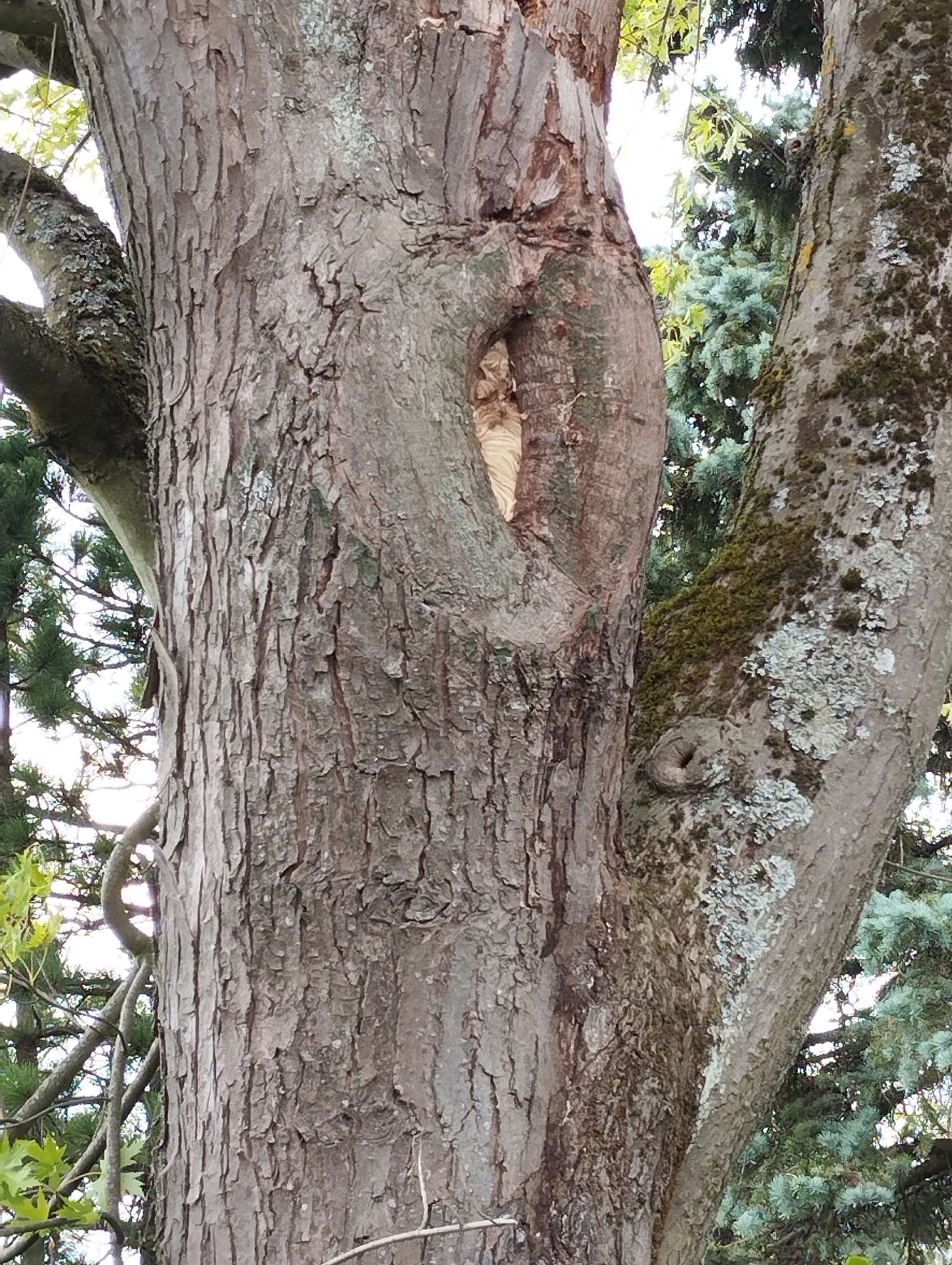 5. Nest: The Asian hornet's nest is often high in the trees, but it can also be found underground or in tall structures such as chimneys. It has an oval shape and is made of chewed wood, which gives the hornet a papery texture.