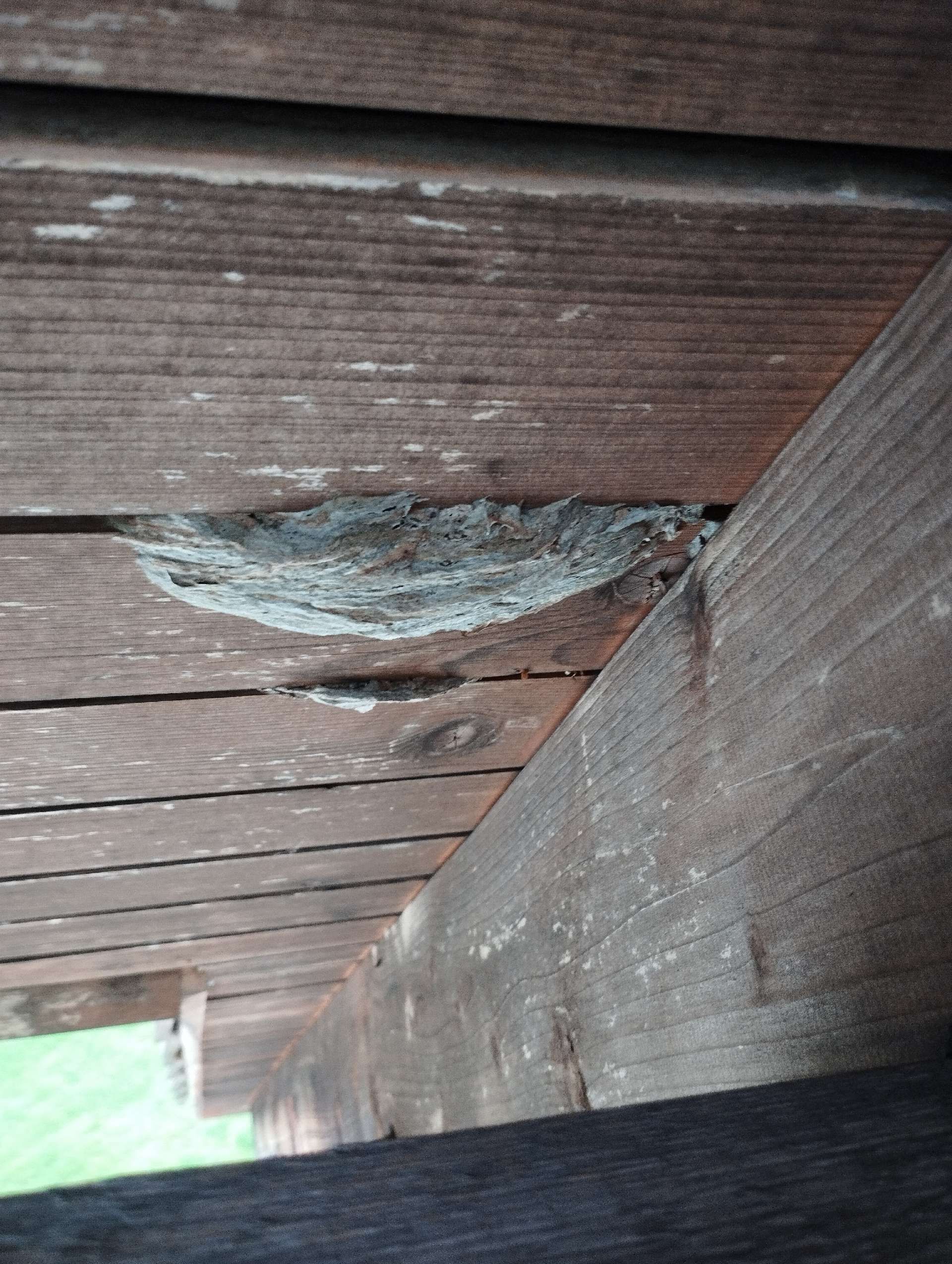 5. Nest: The Asian hornet's nest is often high in the trees, but it can also be found underground or in tall structures such as chimneys. It has an oval shape and is made of chewed wood, which gives the hornet a papery texture.
