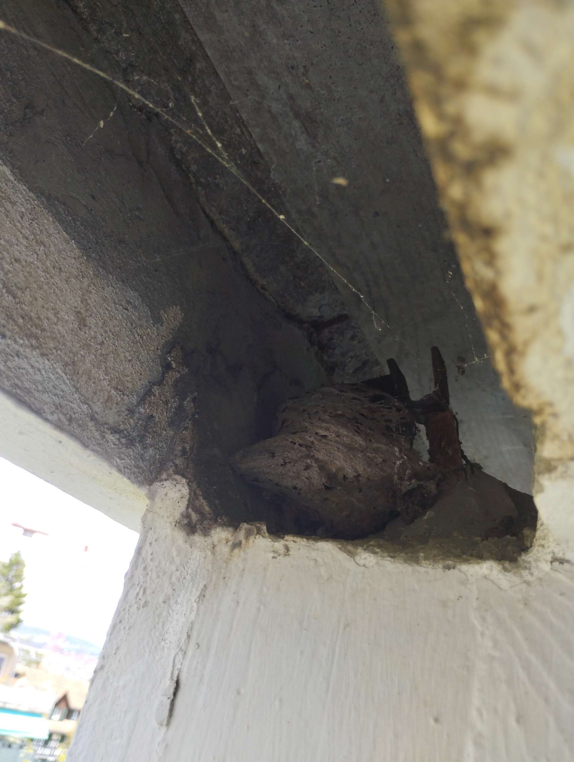 5. Nest: The Asian hornet's nest is often high in the trees, but it can also be found underground or in tall structures such as chimneys. It has an oval shape and is made of chewed wood, which gives the hornet a papery texture.